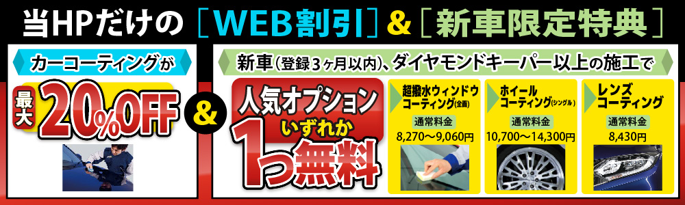 | 特徴 | ダイヤモンドキーパーのボディへの施工に加えて、さらに、コーティングを下記の「施工箇所」に施工いたします! |